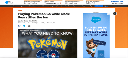 Akhtar, Allana. “Is Pokémon Go Racist? How the App May Be Redlining Communities of Color.” USA Today, 9 Aug. 2016, https://www.usatoday.com/story/tech/news/2016/08/09/pokemon-go-racist-app-redlining-communities-color-racist-pokestops-gyms/87732734/.